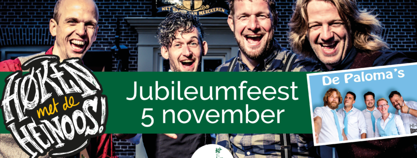 Op vrijdagavond 5 november staan de Heinoos en de Paloma’s in de feesttent op het Kennedyplein. De Heinoos brengen onder de noemer “Høken met de Heinoos” een eerbetoon aan de grondleggers van de dialectmuziek: Normaal. De Paloma’s brengen een mooi stukje “olderwetse” piratenmuziek. Kaarten voor dit feest zijn te bestellen via FlexTickets voor € 12,50 per stuk.
