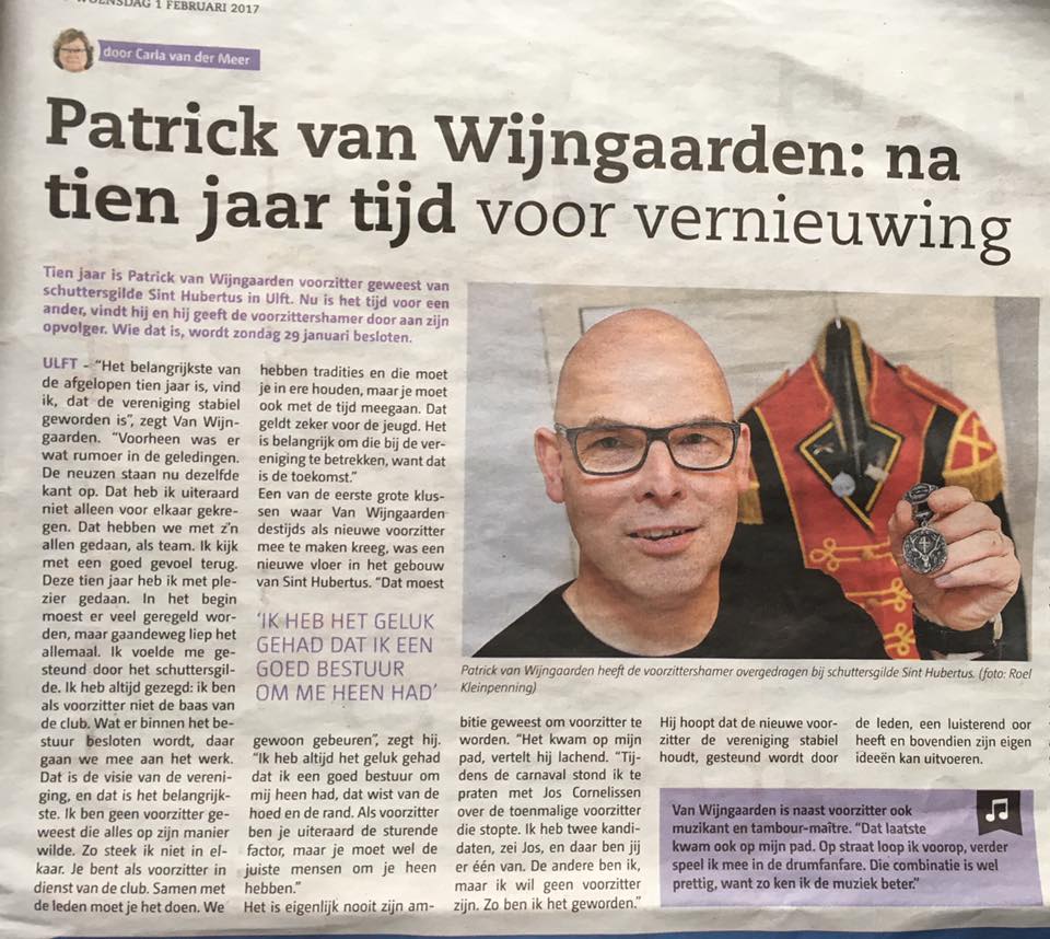 Tijdens de Algemene Ledenvergadering van zondag 29 januari heeft Patrick van Wijngaarden na 10 jaar afscheid genomen als voorzitter. Secretaris Marcel Sewalt heeft na instemming van de vergadering de voorzittershamer overgenomen. Roel Marcus komt in het dagelijks bestuur als Secretaris.