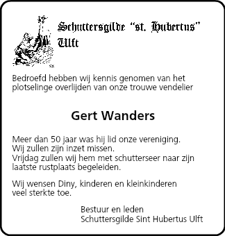 Op 17 maart bereikte ons het droevige bericht van het overlijden van ons schutterslid